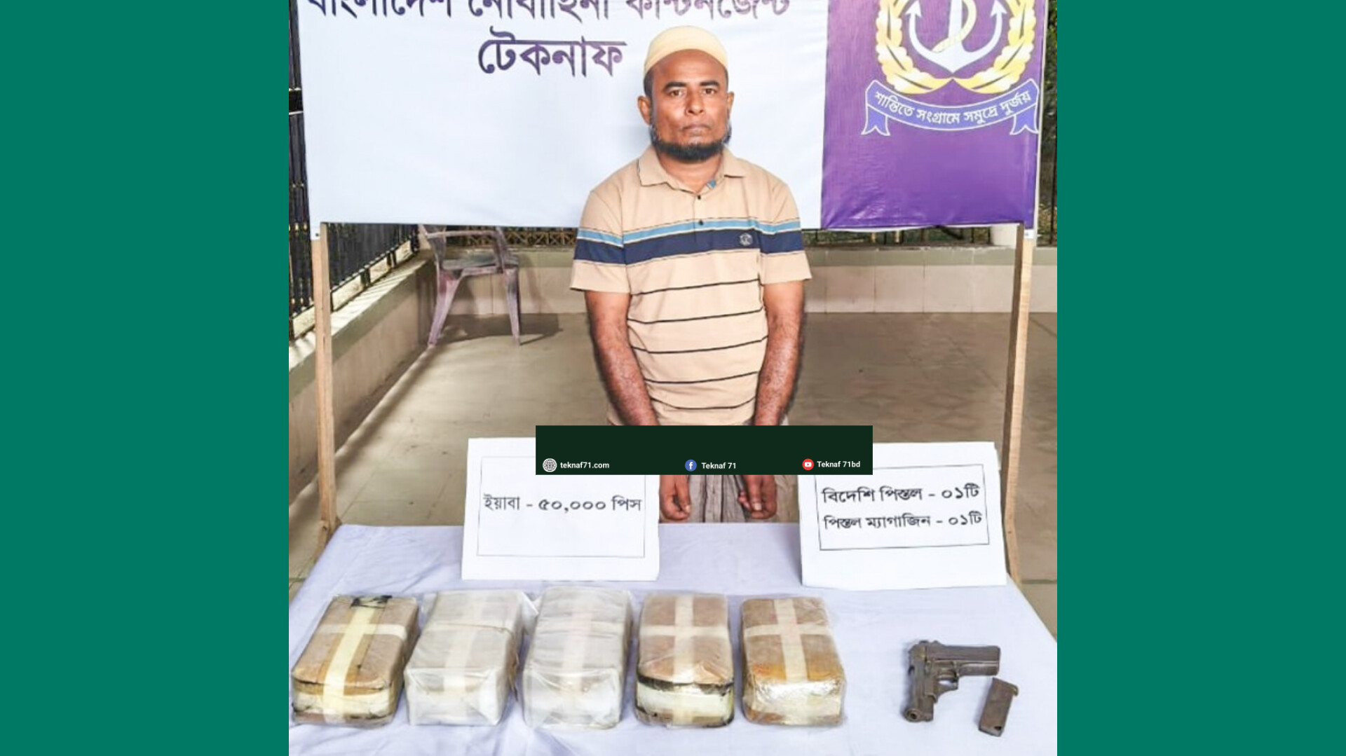 এ তথ্য নিশ্চিত করেছেন বাংলাদেশ নৌবাহিনীর মিডিয়া কর্মকর্তা জানান- গোপন সংবাদের ভিত্তিতে নৌবাহিনীর আভিযানিক দল আলীখালী এলাকার জামাই বাজার সংলগ্ন এলাকায় কৌশলগতভাবে অবস্থা করে। এসময় মাদক ব্যবসায়ী মোঃ রফিক ওরুফে বরমাইয়া রফিক সিএনজি যোগে উক্ত এলাকায় আগমন করলে তাকে আটক করা হয়। প্রাথমিকভাবে সিএনজিটি তল্লাশি করে কোনো মাদকদ্রব্য পাওয়া না-গেলেও জিজ্ঞাসাবাদে জানা যায়, মাদকের চালানটি তার দুইজন সহযোগীর মাধ্যমে চৌধুরীপাড়া ব্রিজ সংলগ্ন একটি মাটির স্তুপের নিচে পুঁতে রাখা হয়েছে। উক্ত তথ্যের ভিত্তিতে নৌবাহিনীর আভিযানিক দলটি তাৎক্ষণিক চৌধুরীপাড়া ব্রিজ সংলগ্ন এলাকায় তল্লাশি অভিযান পরিচালনা করে মাটির স্তুপের নিচে পুতে রাখা একটি ব্যাগ হতে ৫০ হাজার পিস ইয়াবা এবং ১ টি বিদেশি পিস্তল উদ্ধার করা হয়।